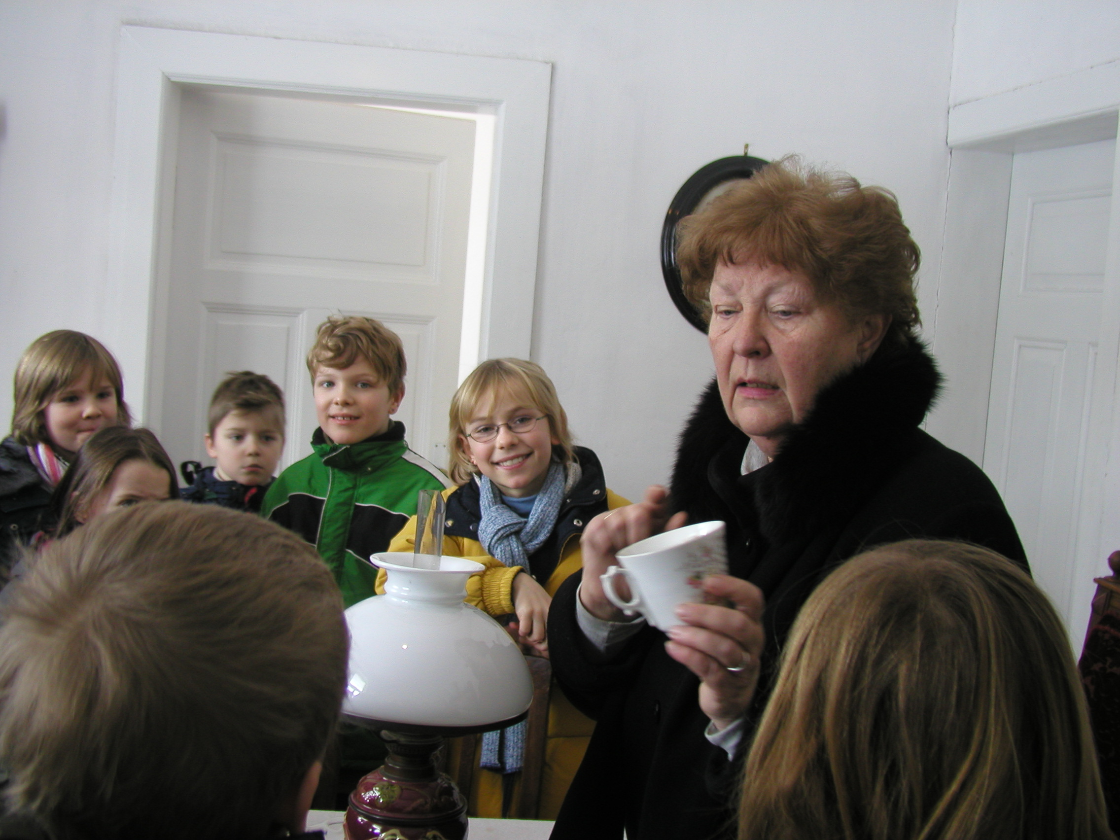 In der Lehrerwohnung gab es viele Dinge zu sehen. Herr Schmidt hat sich sogar in den Sessel des Lehrers gesetzt und seine Pfeife ausprobiert.