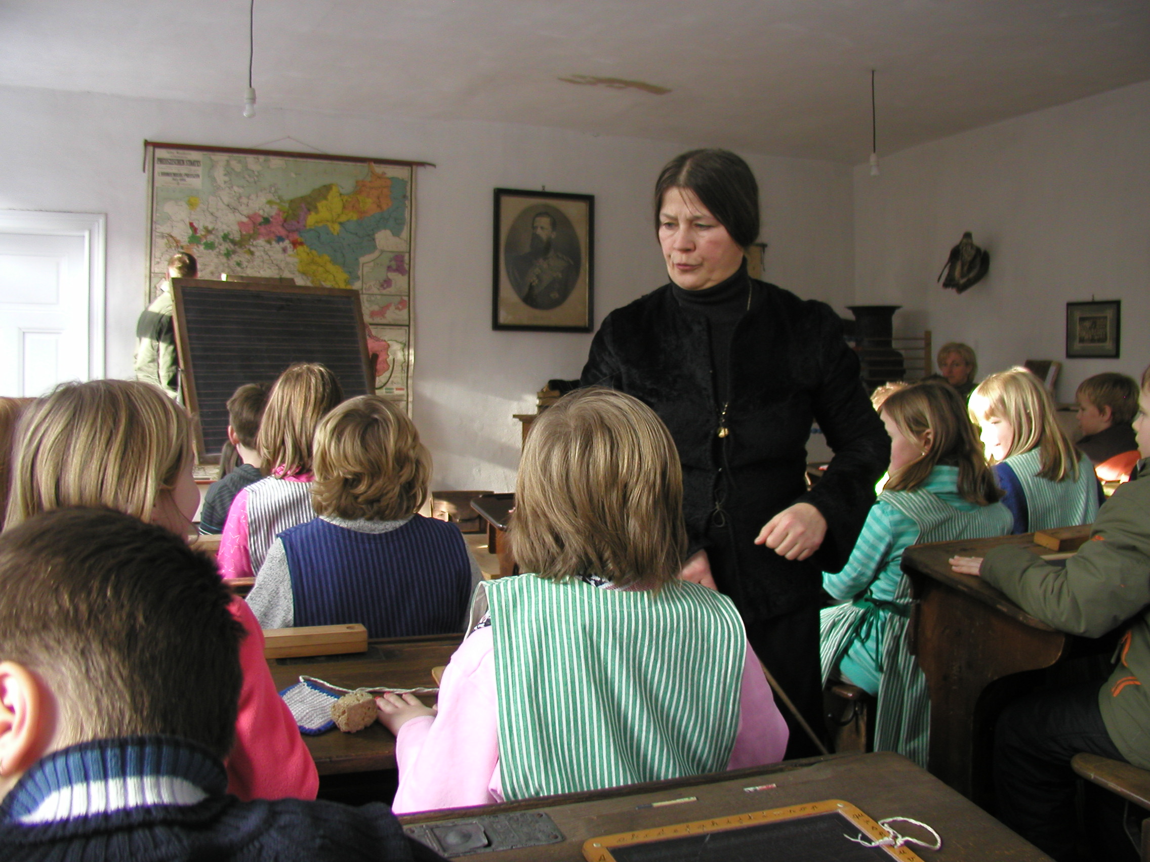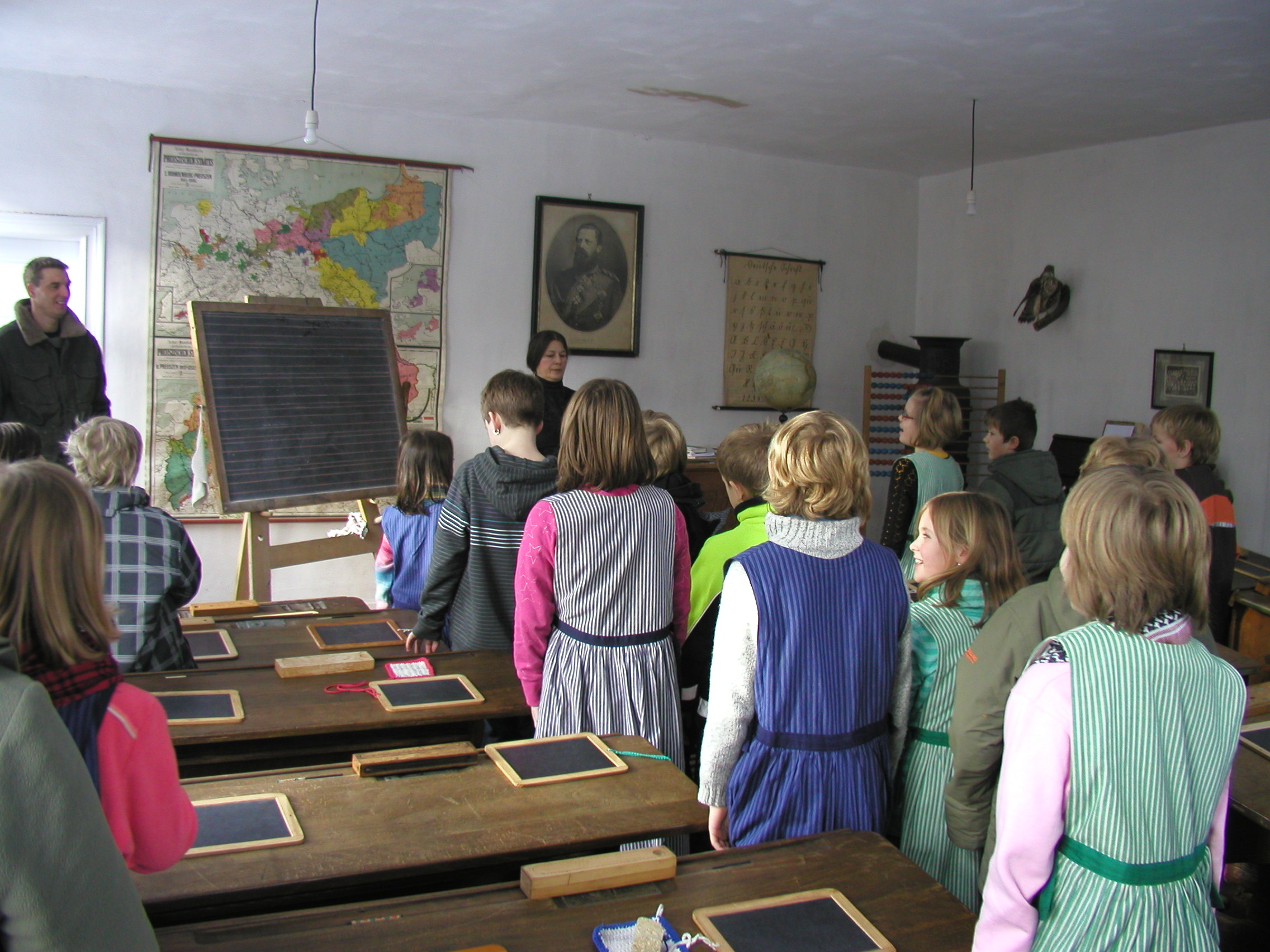 Alle Mädchen mussten Schürzen tragen, alle Jungs hatten Holzschuhe.